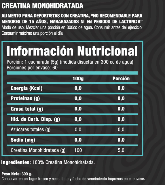 • Pureza y Calidad: Fórmula monohidratada de alta calidad, garantizando un aprovechamiento óptimo por parte del organismo.