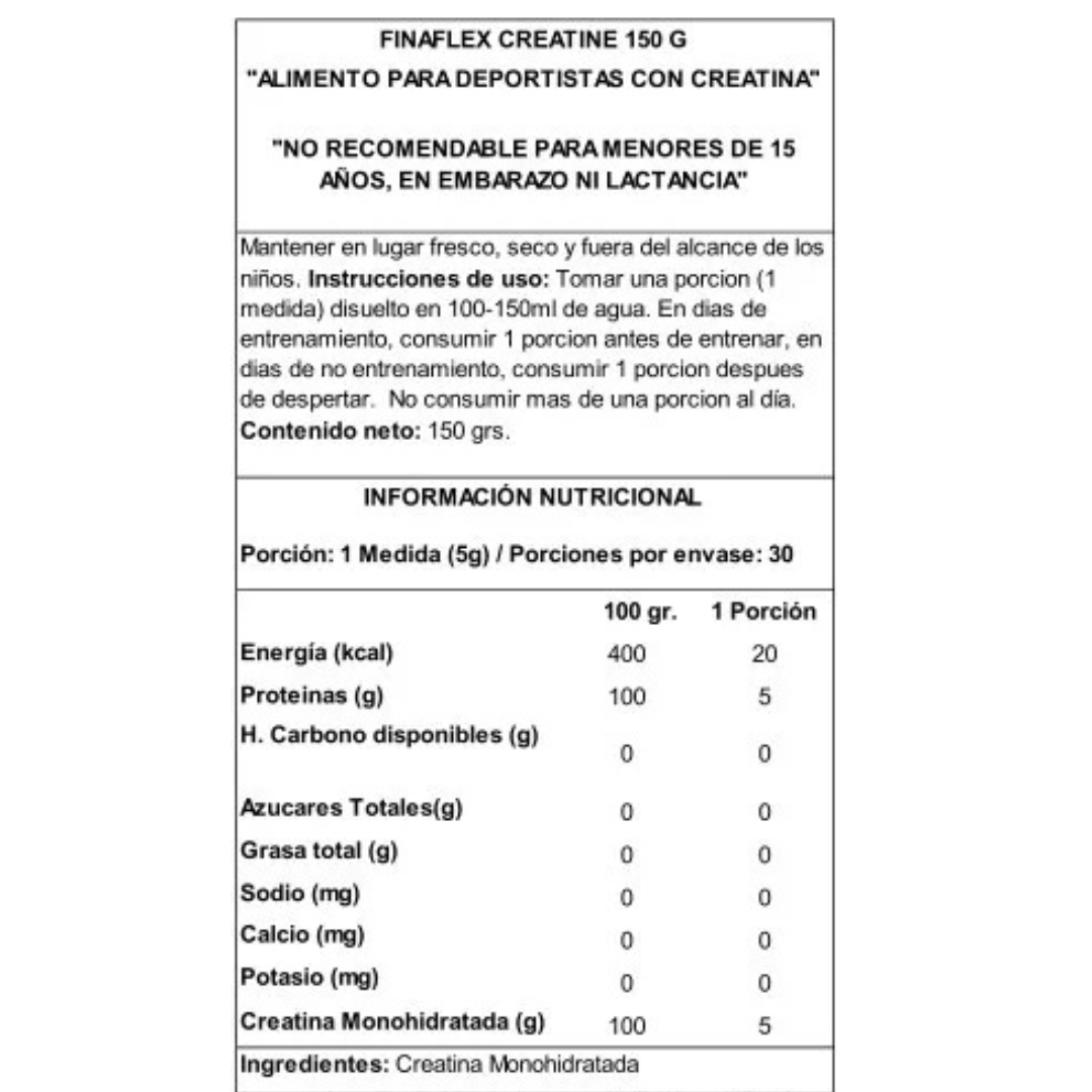Inicio Suplementos deportivos Creatinas Creatina 100% Monohidrato Finaflex 150grs