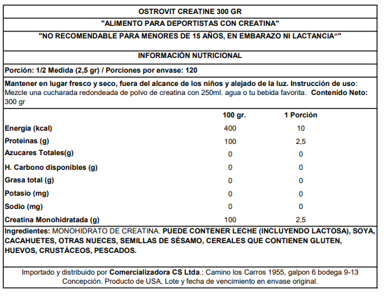 Contenido neto: Proteína Strongest (2 lb) y Creatina Ostrovit (300 g).