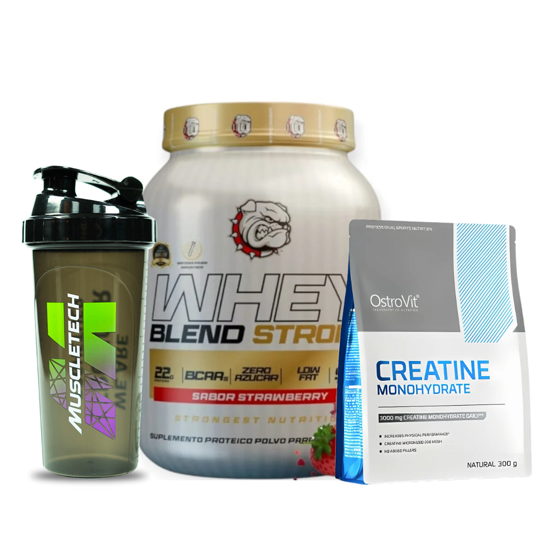 Este pack ha sido diseñado pensando en la practicidad y la eficacia del atleta. Al combinar la Proteína Strongest con la reconocida Creatina de Ostrovit, obtienes los dos pilares fundamentales para el crecimiento y el rendimiento muscular: la reparación de tejidos mediante aminoácidos de alta calidad y la mejora de la capacidad de trabajo explosivo gracias a la resíntesis de ATP. Además, incluimos un shaker de regalo para que la preparación de tus batidos sea sencilla y rápida, facilitando el cumplimiento de tu plan de suplementación diario.